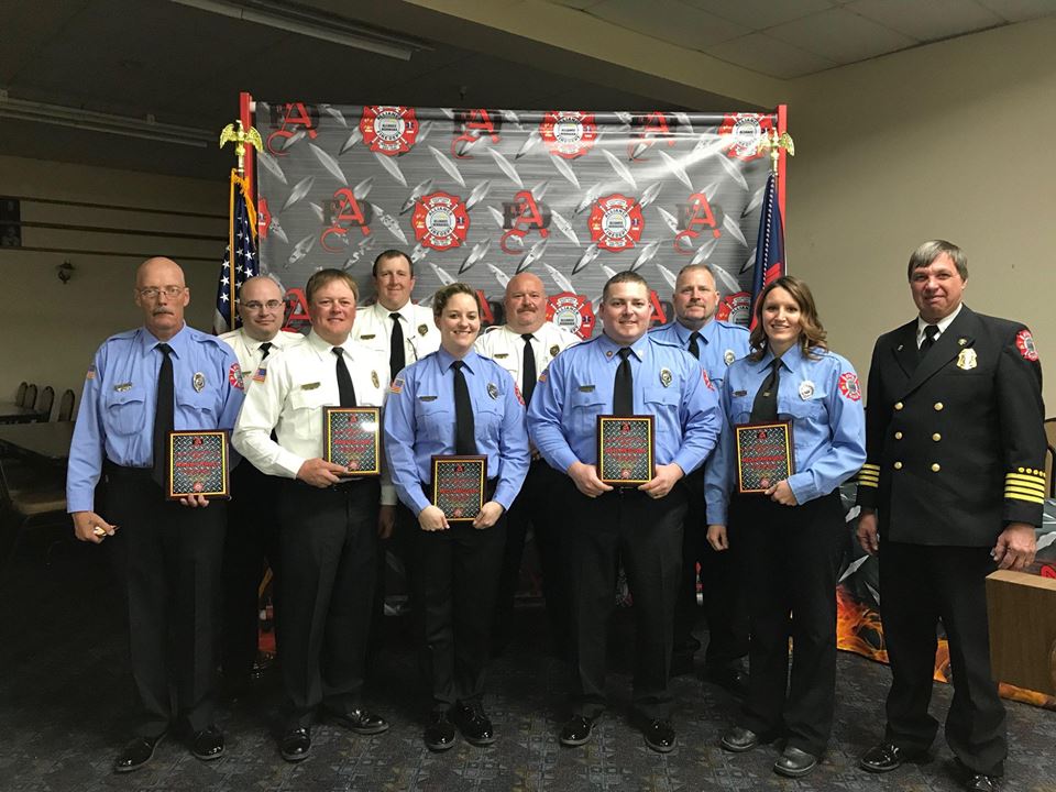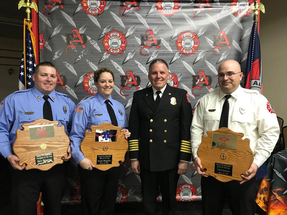 According to the Alliance Fire Department, “On Saturday night, March 24th, the fire department held its Annual Officer Installation banquet. The 2018-2019 Club Officers and Line Officers were installed. The department also recognized some funny awards, the Chief’s Top Ten Responders, Firefighter, EMT and Officer of the year and also years of service awards.” Below are photos of the awards with text from the AFD facebook page.
