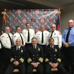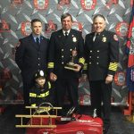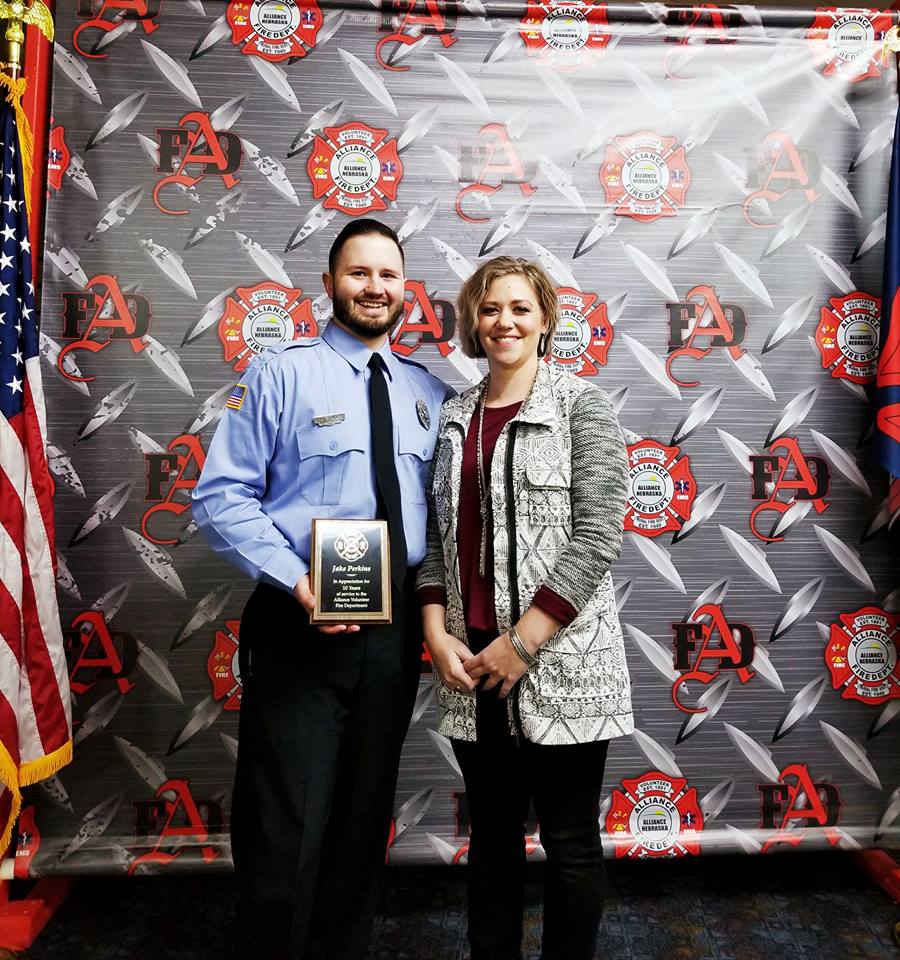 Assistant Fire Chief Brad Schrum was recognized for 40 years of service to the fire department. His award had some special delivery people. His youngest son Kody, who is a firefighter with the Fire Department of New York and his grandson Issac. L-R, Kody, Issac holding grandpa’s hand, and Chief Troy Shoemaker.Chief’s Top Ten Responder award winners. L-R; Randy Prall, Tim Petersin, Travis Lurz, Nick Hinman, Megan Meggison, Al Lorensen, Dave Meggison, Troy Strang, Meagan Shrewsbury and Brad Schrum.Firefighter of the year: Dave Meggison, EMT of the year: Megan Meggison, Chief Shoemaker, and Officer of the year: Tim Peterson.2018-2019 Club Officers, L-R, Chaplain Wes Whitwer, Trustee Howard Taylor, III, Trustee Troy Strang, Vice President Megan Meggison, Conductor Mike Mady, President Dave Meggison, Treasurer Ken Huff and Secretary Marty Jones.2018-2019 Line Officers. L-R, front row, Asst. Fire Chief John Dahlberg, Fire Chief Troy Shoemaker and Asst. Fire Chief, EMS Brad Schrum. Back row, L-R, Captain Josh Carr, Lieutenant Tim Peterson, Captain Travis Lurz, Captain Nick Hinman, Captain Al Lorensen, Lieutenant Howard Taylor, III, and Lieutenant Josh Jensen. Not pictured is Lieutenant Justin Setter.Jacob Perkins got his ten year award of service to the Alliance Fire Department.