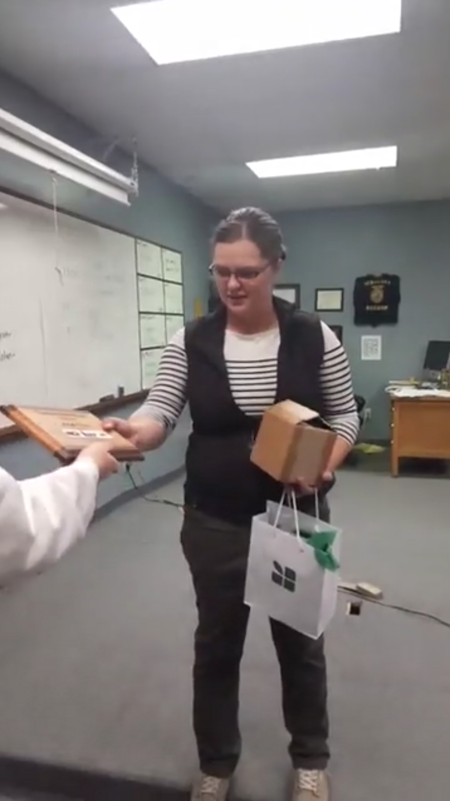 The dangerous duo, Jason Wentworth and Kalin Krohe traveled to Alliance High School this past week to celebrate an outstanding teacher, Ashtyn Vivion. From the nomination we received this student stated, “she’s understanding when you have to be gone for sporting events and other school activities and she also makes sure the students are not only learning, but having fun.” The class was excited to receive cookies from Great Western Bank in Alliance and Ashtyn received some gifts from our local business sponsors including some items from our Title Sponsor of the Alliance Area Teacher of the Month Total Reflections Salon in Alliance. Praise and applause was given as we recognized a great teacher doing great things for her students. Thank you Ashtyn for taking such an important subject for our area, AG. We appreciate you for all you do, you’re making an impact in your students lives!