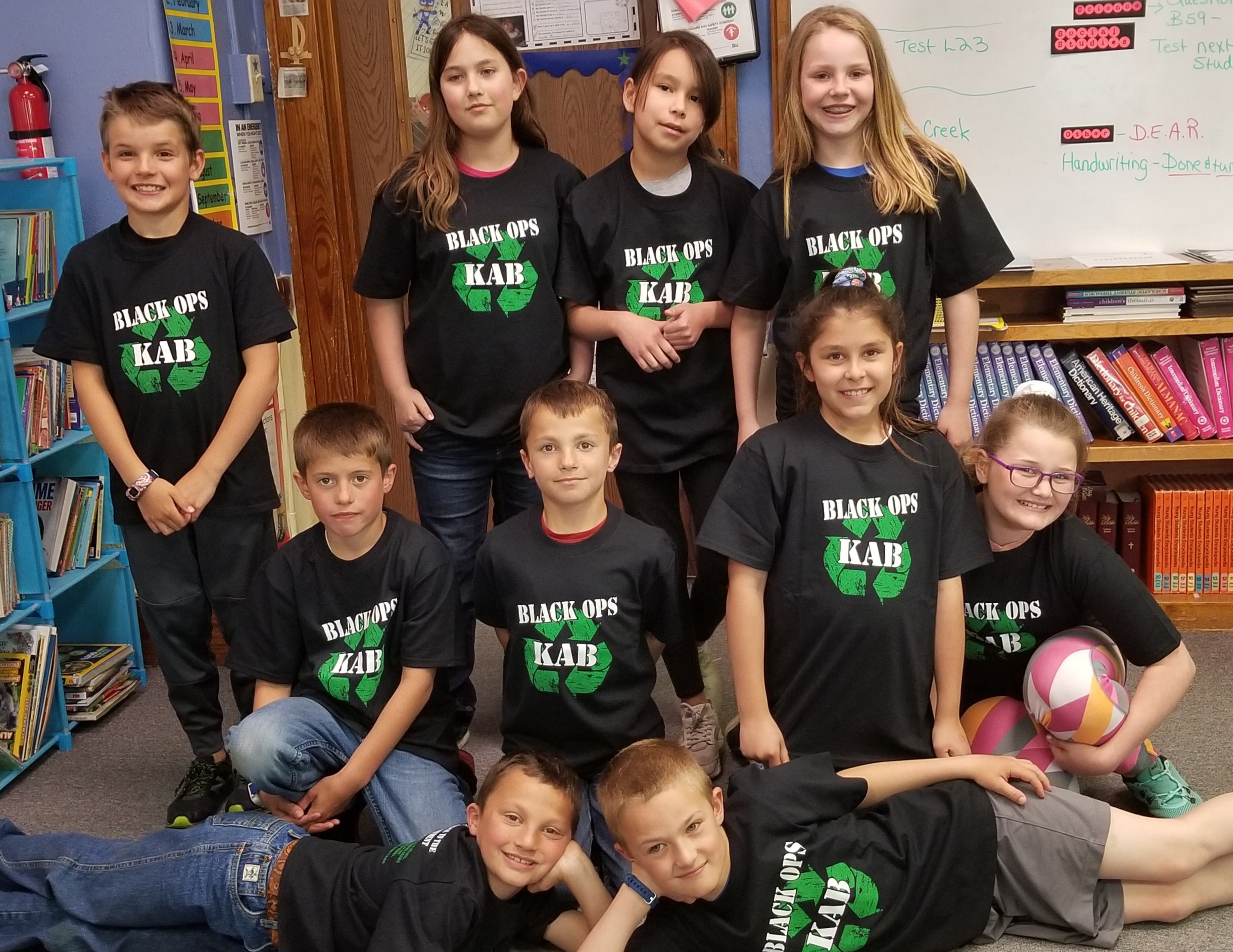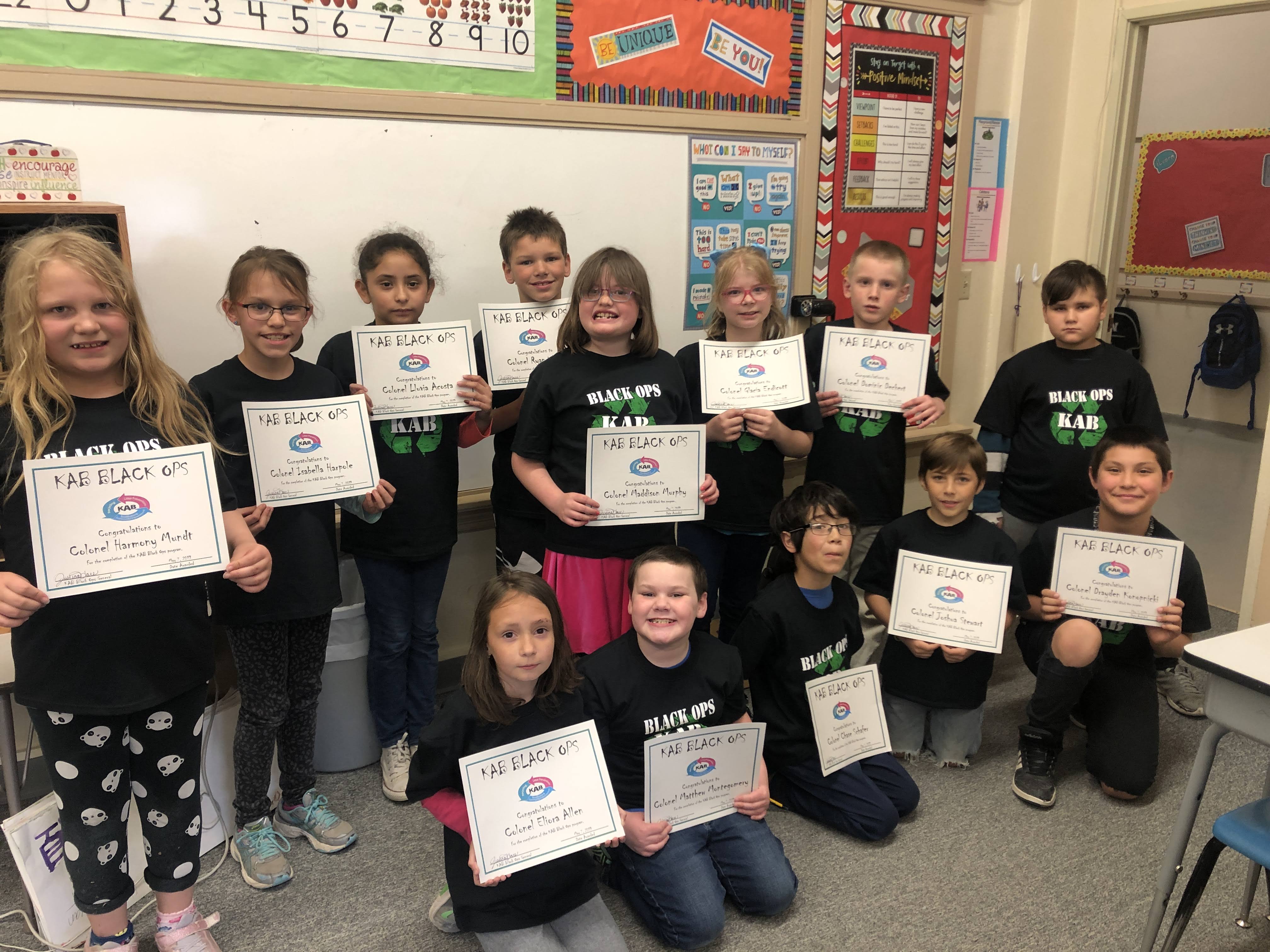 Six third grade classes and one fourth class have completed the KAB Black Ops program this year. The classes completed seven missions throughout the school year to achieve this accomplishment. The missions included creating upcycled Christmas ornaments, learning to pack a waste free lunch, and a litter pickup on their playgrounds. As the students completed missions they moved up the ranks of the KAB Black Ops program. They began the year as privates and gradutated as colonels.