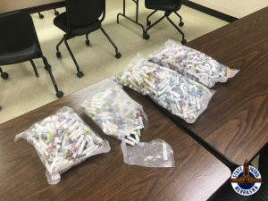 The search revealed 947 THC vape cartridges in vacuum sealed bags hidden inside a box in the cargo area. The driver, John Norris, 22, of Johnston, Iowa, was arrested for possession of THC/Hash Oil with intent to deliver and no drug tax stamp. A female passenger was cited and released for possession of marijuana – less than one ounce.