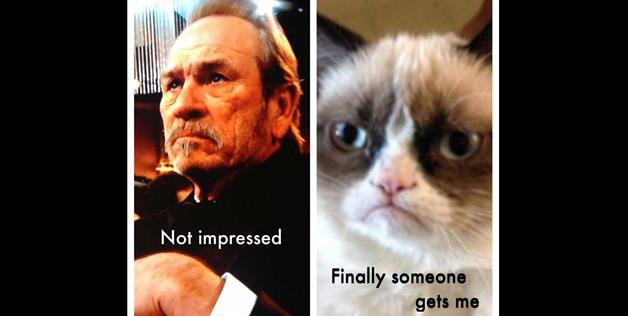 LOS ANGELES (AP) – You want to know how they got the shot of Tommy Lee Jones frowning during a sketch with Will Ferrell and Kristin Wiig at the Golden Globes? Jones says they had a camera focused on him for 45 minutes “until they got the shot they were looking for.” Once they did, he says, viewers started posting “their little joke, tweet,” comparing him to the famous Internet feline, Grumpy Cat. He says he doesn’t care.