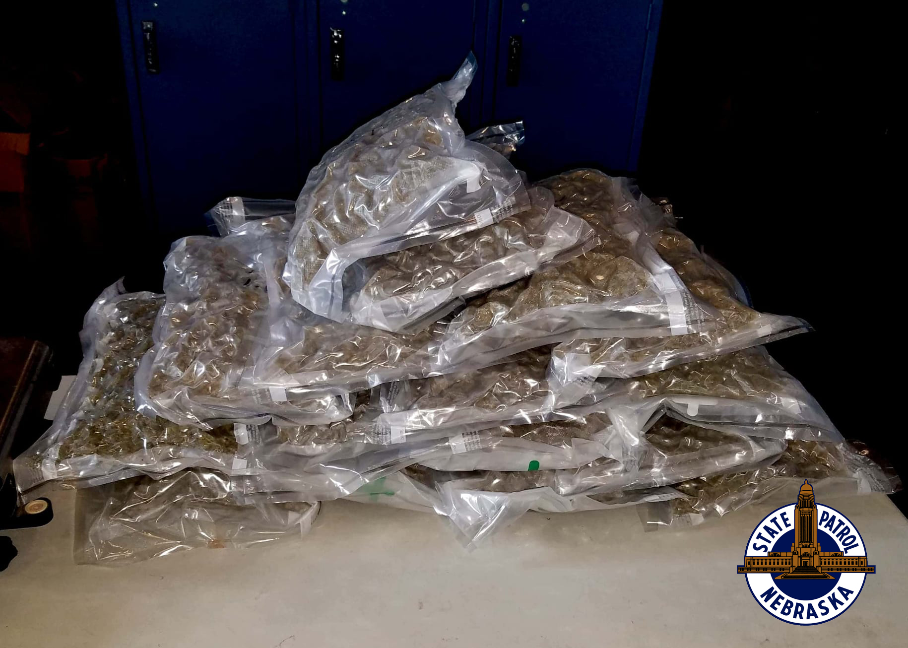 During a search of the tractor, troopers discovered duffel bags filled with packages of marijuana, THC vape cartridges, and an unknown white powder. The seizure totaled 95 pounds of marijuana, 996 vape cartridges, and 88 pounds of the unknown white powder. With the possibility that the white powder is fentanyl, it has been transported to the NSP Crime Lab for testing in a safe and controlled environment.