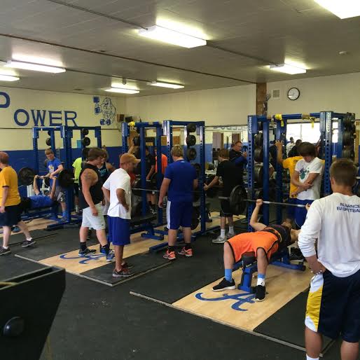 Summer workouts continue as Alliance High School Student Athletes prepare for the new school year. Thanks to the hard work of several AHS Coaches and other volunteers, Alliance Athletes now have a new rubber floor in the weight room.