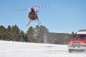 A helicopter from Leading Edge Aviation out of Clarkston, Washington, takes off to collar elk in Wind Cave National Park. (NPS Photo)